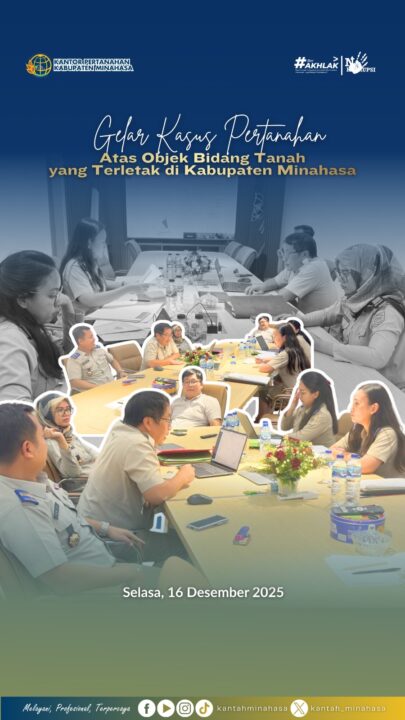TONDANO, SpiritKawanua.com – Kantah Minahasa telah menggelar kasus pertanahan atas objek bidang tanah yang berada di wilayah Kabupaten Minahasa, Selasa (16/12/2025). Kegiatan secara daring bersama Kanwil BPN Sulut ini merupakan pembahasan dan penelaahan permasalahan pertanahan secara komprehensif, objektif, dan terukur.