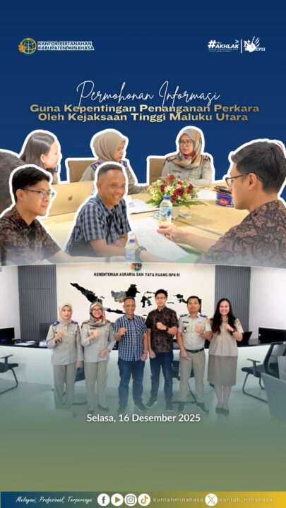 “Kegiatan ini merupakan bentuk dukungan terhadap proses penegakan hukum melalui penyediaan informasi yang akurat, transparan, dan sesuai dengan peraturan perundang-undangan,” kata Kepala Kantah Minahasa Richart Runtuwene, Selasa (16/12/2025).
