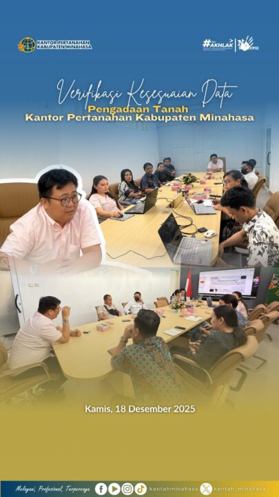 TONDANO, SpiritKawanua.com – Kantor Pertanahan Kabupaten Minahasa melakukan verifikasi kesesuaian data pengadaan tanah, Kamis (18/12/2025). Verifikasi dipimpin langsung Kepala Kantah Minahasa Richart Runtuwene.