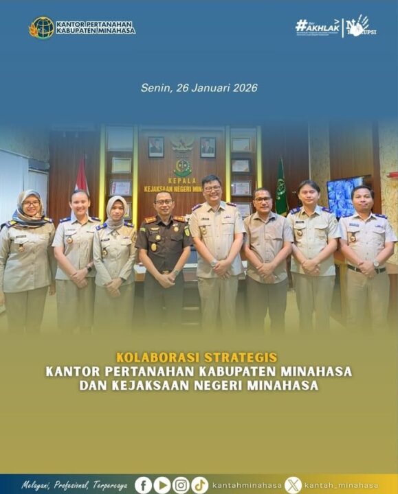 TONDANO, SpiritKawanua.com – Kepala Kantor Pertanahan Kabupaten Minahasa Richart Runtuwene menemui Kepala Kejaksaan Negeri Minahasa Rama Eka Darma di Kejari Minahasa, 26 Januari 2026. Pertemuan itu sebagai upaya memperkuat sinergi dan kordinasi dalam penegakan hukum di bidang pertanahan.