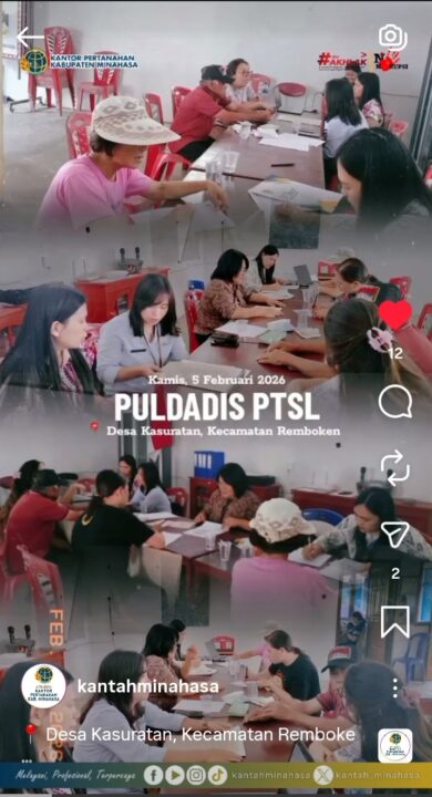 MINAHASA , SpiritKawanua.com – Kantor Pertanahan (Kantah) Kabupaten Minahasa mengadakan pengumpulan data yuridis (Puldadis) di Desa Kasuratan, Kecamatan Remboken, Kabupaten Minahasa, Kamis (5/2/2026).