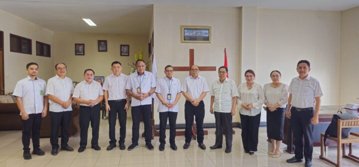 TOMOHON, SpiritKawanua.com – Kepala Cabang BPJS Ketenagakerjaan Sulawesi Utara, dr. Maulana Anshari Siregar bersama Kepala Cabang BPJS Ketenagakerjaan Tondano, Stephano Liuw berkunjung ke Kantor Sinode Gereja Masehi Injili di Minahasa (GMIM), Senin (9/2/2026). Kedatangan mereka diterima langsung Ketua Badan Pekerja Majelis Sinode (BPMS) GMIM Pdt. Dr. Adolf Wenas, M.Th bersama Sekretaris BPMS GMIM Pdt. Dr. Evert A. A. Tangel, M.Pd.K, dan sejumlah pengurus BPMS GMIM.