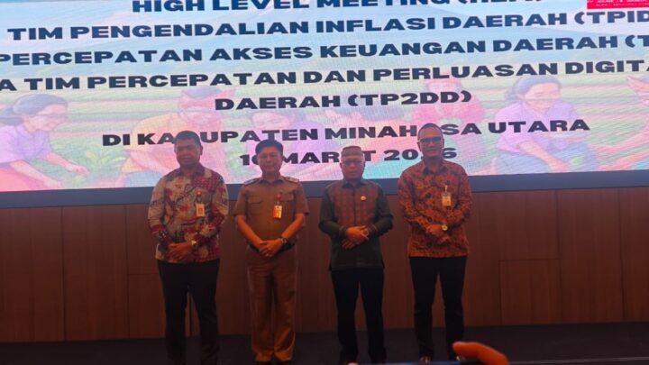 MINUT, SpiritKawanua.com – Bank Indonesia Sulawesi Utara bersama Pemerintah Kabupaten Minahasa Utara (Minut) kembali semeja di High Level Meeting (HLM) Tim Pengendalian Inflasi Daerah (TPID), Tim Percepatan dan Perluasan Digitalisasi Daerah (TP2DD), dan Tim Percepatan Akses Keuangan Daerah (TPKAD). HLM ini wujud sinergi menjaga stabilitas dan mendukung pertumbuhan ekonomi. Kegiatan dipimpin oleh Sekretaris Daerah Minahasa Utara, Novly G. Wowiling, dengan dihadiri Bupati Gorontalo, Sofyan Puhi, Deputi Kepala Perwakilan Bank Indonesia Provinsi Sulawesi Utara, Renold Asri, Kepala OJK Provinsi Sulawesi Utara dan Gorontalo, Robert H.P. Sianipar, serta anggota TPID, TP2DD, dan TPAKD.