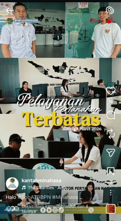 TONDANO, SpiritKawanua.com – Kantor Pertanahan (Kantah) Kabupaten Minahasa tetap membuka pelayanan pertanahan terbatas. Pelayanan ini guna memastikan kebutuhan masyarakat dapat terpenuhi dengan baik.
